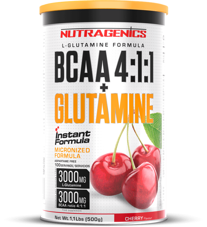 Cherry: L-Glutamine, BCAA's 4:1:1 [branched chain amino acids (L-leucine, L-isoleucine, L-valine)], maltodextrin, acidity regulator (citric acid), aroma, color (betanine), sweeteners (sucralose and acesulfame K). May contain traces of milk, gluten, soy, eggs and crustaceans.